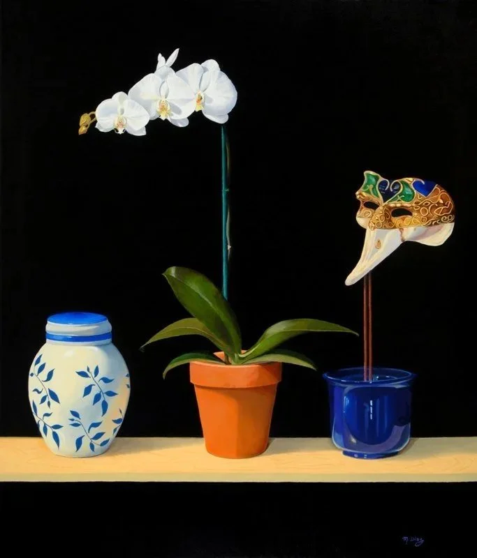 Three different artistic styles merge in the exhibition, ‘Three Friends’. Howard Carr’s work is diverse and eclectic. Exciting, modern and culturally significant. Mikel Diaz’s skill for capturing light, shadow and texture is astounding. The work is elegant and refined. Both Artists are highly skilled. A wealth of experience found in every stroke. And then — Ce Jamieson, former assistant Scribe and Illuminator to HM Queen Elizabeth II, steps onto the stage. Bringing a love for abstraction and modern art. Yet, classically trained with years spent in the fields of both heraldic and contemporary art. Jamieson’s work serves as a bridge between the work of Carr and Diaz. Together these, ‘Three Friends’ have brought an exciting exhibition to Howard - Jamieson Contemporary Art.